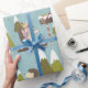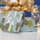 Send your loved ones and friends gifts that are wrapped in this fun and quirky wrapping paper for the holidays. This design features hedgehogs checking their mailboxes with snow covered trees against a blue background.