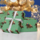 Add a touch of sparkle to your Christmas gifts with these wrapping paper sheets featuring funny american horses wearing Christmas Santa hat, with green glitter as background.