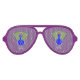 This awesome pair of party shades features a bright and bold Christmas Peacock wearing a Santa hat. The bird has a bright blue belly with a beautiful collection of feathers held proudly behind. The eyespots are blue, brown and green. The Peacock has big black eyes and a cute little grey beak.