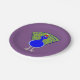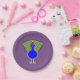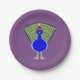 This awesome paper party plate features a bright and bold Christmas Peacock wearing a Santa hat. The bird has a bright blue belly with a beautiful collection of feathers held proudly behind. The eyespots are blue, brown and green. The Peacock has big black eyes and a cute little grey beak.