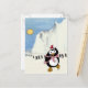 Funny Christmas penguin dancing in the Antarctic. Holiday Postcard