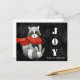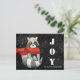 This funny holidays postcard features watercolor picture of cute racoon in bright red scarf and text joy on the black background, decorated white confetti. Congratulate your loved ones with this funny modern greeting card.