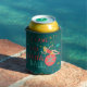 Funny Christmas Retro Woman on Festive Xmas Ball Can Cooler