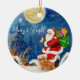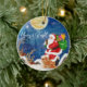 Funny Christmas Santa Claus Holding Sack of Gifts Ceramic Ornament.