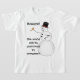 An evil snowman in a threatening pose and armed with a carrot, silly cartoon drawing on a t shirt for silly kids.