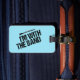 Cool clarinet humour gift that reads I'm With The Band under the instrument. Personalise these cute luggage tags to make a funny stocking stuffer gift for someone who likes playing the clarinet.