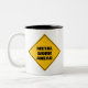 Funny classic yellow warning sign metal work ahead Two-Tone coffee mug