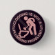 This funny button for clog dancers says, "Clogging is not a plumbing problem!" in pink letters. It shows a silhouette of a person plunging a toilet. The outer circle also has the outline of the bottom of two clogging shoes. This is a classic, humourous design for a clogging fan / clogger.