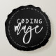 With the cool job title, "Coding Mage" (set in OCR and handwritten word pairing fonts), and the humourous anonymous observation "Programming is 10% science, 20% ingenuity, and 70% getting the ingenuity to work with the science." on the reverse, this is the perfect pillow for coders, programmers, and software developers who are at the top of their game, love what they do, or are absolute wizards at their craft (and those long hours in that chair)!