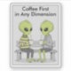 Add a touch of cosmic humor to your day with this fun and quirky sticker featuring two aliens enjoying their coffee together. The design is paired with the phrase “Coffee First in Any Dimension”, making it perfect for coffee lovers with a sense of humor. Ideal for decorating laptops, water bottles, notebooks, planners, or coffee mugs. A great gift for caffeine addicts, space enthusiasts, and anyone who believes coffee comes before everything—no matter the universe.