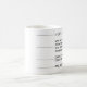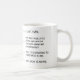 Basic mug, works great, heats evenly, holds enough caffeine to do the job, refills well, can't ask for more. Clean print, easy to read, well done.