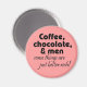 Funny coffee shop gifts pink fridge magnets women's birthday gift. Coffee, chocolate, & men some things are just better rich!