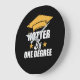 Purchased this online and it got delivered quickly. It was a present for my Dads 70th birthday. He loves clocks so decided to get him one with something written on it. Battery went in and it started working straight away. Dads had no issues with it. Printing was just how it came up online.