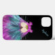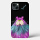 Cute cat lovers iPhone 13 case done in black, with graphics of a funny colourful cat, on the bottom half, of the case. Personalise the aqua text, as a great gift idea for her.