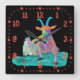 Funny Colourful Orange Screaming Goat Art Design Square Wall Clock