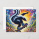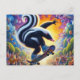 Funny Colourful Skunk Skateboarding Postcard