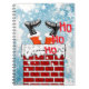 Funny Santa claus stuck in chimney notebook, this design has an blue sky background with snow and snowflakes