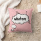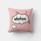 Funny pillow, front of pillow is a comic thought bubble; design as shown says "whatevs", but customise with any text you'd like. Back of pillow is scattered with large black polka dots. Pillow shown is pale pink, but can be any colour you choose. Select CUSTOMIZE and change background colour to suit your taste. Be sure to change or coordinate colours on both front and back of pillow.