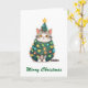 Funny Comic Whimsical Cat Merry Christmas Tree Card