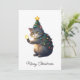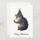 Funny Comic Whimsical Cat Merry Christmas Tree Holiday Card