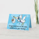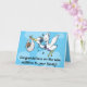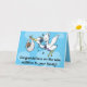 A fun congratulations on your need baby card featuring a cartoon stork wearing headphones delivering a screaming baby boy. The outer part of the card reads "congratulations on the new addition to your family!" and the inner part reads "Good luck! (You're gonna need it!) but you can change the text to say what ever you like as it is fully customisable!