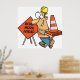 Brighten up your space with this funny construction worker cartoon poster featuring a grinning road crew member carrying cones beside a “Road Work Ahead” sign. Perfect for offices, workshops, classrooms, or garages, this colourful design adds humour and charm to any wall. Printed on premium-quality paper with rich colour detail, it’s a great gift for construction professionals, engineers, or anyone who appreciates a bit of worksite humour.