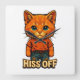 Vivid orange cat mascot wearing a ripped tee, bold HISS OFF lettering, and bright blue eyes. Neon-like shading on black background creates an edgy, playful streetwear vibe for cat lovers.