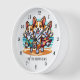 Create a funny personalised clock with three corgi dogs dancing on a beach. The template makes it easy to customise the Family name. This design is cute for a beach house, especially for Pembroke Welsh Corgi owners.