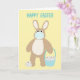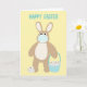 This funny Easter greeting card features a cartoon illustration of the Easter bunny wearing a protective medical mask and carrying an Easter basket that's filled with toilet paper.