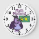 This custom wall clock has a funny purple cartoon gorilla trying to figure out a math problem about bananas. It's counting on its fingers and looking rather confused.