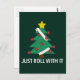 Funny Covid Christmas postcard that reads Just Roll with It. This toilet paper coronavirus humour card features a Christmas tree decorated with Covid19 ornaments and unrolled toilet paper for a garland decoration this pandemic holiday season.