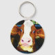 A humourous brown and white cow with a long face, big floppy ears and a tongue that's sticking out. We named him Jethro because we think he looks like a hillbilly! Fauvist Painting style portrait with distorted features and messy brushstrokes.