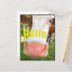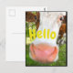 Funny portrait photo of a cow with the text Hello, but you can easily change or delete the text if you want.