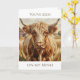 A cute thinking about you card for a friend or family member with a cover with an impasto cow looking at ya. Cute cow pun and farm animal art.