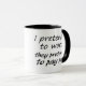 Funny coworker coffee cups office joke gift ideas. Humour fun gifts for friends, your boss or even family. I pretend to work, they pretend to pay me. Design by Wisecrack gifts.