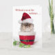 Cranky Cat with Santa Cap sits in a red woven Christmas basket with a white fur rim. Cat has a silly expression and one snaggle tooth. You cat-loving friends will love receiving this Christmas card. Christmas message can be personalised. See our matching Christmas postage stamps and other pet Christmas cards, stamps and mugs at our store: SAP_Photo* Happy Holidays!