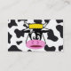 Funny Crazy Cow Bull on Dairy Cow Print Pattern Business Card
