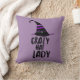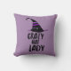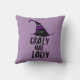 Purple Halloween themed throw pillow with "Crazy Hat Lady" and witches hat.