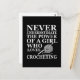 If you love crocheting or know someone who does, then this funny quote for crochet lovers is perfect for you or anyone who loves to crochet or even likes funny crocheting quotes. This original funny crochet quote and graphic design are perfect for starting beginners who want to study crocheting or experienced crafters looking to add something unique to their wardrobe It's also could be an original gift idea for a birthday or Christmas present for your best friend, relative, or girlfriend whose passion is crocheting, and this great quote will help them remember why they love it so much.