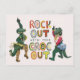 Send some love and laughter to someone special with this adorable postcard. It features two funny dancing crocodiles and the hilarious pun “Rock out with your croc out”. It’s a great way to let them know you’re thinking of them and make them smile. This postcard is made of glossy cardstock and comes in various sizes and colours. It has a space on the back for you to write your own message and address. Just add a stamp and mail it to your recipient. They’ll love receiving this postcard from you!