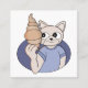 A playful cartoon cat, wearing a blue t-shirt, displays a croissant with sharp outlines and soft pastel tones. A quirky and friendly vibe for children and lovers of pets and croissants.