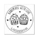 This "Handmade with love" rubber stamp features funny cupcakes with custom name.