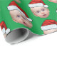 Funny Custom Face Photo Santa Hat Christmas Green Wrapping Paper