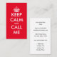 Funny custom Keep Calm business card template. Professional visit card in red or custom colour. Modern typography with crown. Keep calm and call me. Great for any type of company or self employed person. List your services or trade on the back. Make your clients smile with a fun office card.