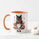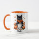 This Funny Cat mug features a cat with coffee and autumn pumpkins.