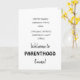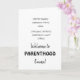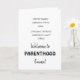 this funny welcome to parenthood card says no more happy hours, weekend trips and chilling! instead more of changing diapers, sleepless nights,and chaos! Welcome to parenting life. new mom,new dad, parenting starts! the inside features toys bricks- a toy which all parents can relate to!