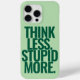 Funny Custom Text Think Less Stupid More Green iPhone 15 Pro Max Case.
