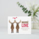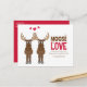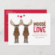 Cute Whimsical Moose saying "it moose be love". This design features anniversary cute whimsical fun funny invitations, perfect for wedding anniversary anniversaries parties, a celebration celebrate get together, a humour moose animal heart love, it moose be love quote, a creative unique cool typography font, trendy stylish modern light style, couple husband wife, red cartoon graphic illustration hearts, cute anniversary budget postcard