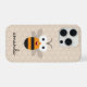 This iPhone 15 Pro Case features a cartoon illustration of funny cute smiling Bee on the honeycomb background. You can easily personalize your name using Zazzle online tools. If you need help to transfer the same design to another phone case, don't hesitate to contact me via Zazzle.