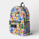 A fun and cute colourful cartoon in blue, yellow, orange, red, pink, and green. Cute printed backpack design for kids. Add an extra bonus line of text - phone number, team name, saying, etc. - or delete.  If you would like to alter the design's colour or font, or even take the personal tag off, send me a message on Zazzle. Feel free to contact me; I will respond and address your request normally within 1 day. Enjoy shopping!